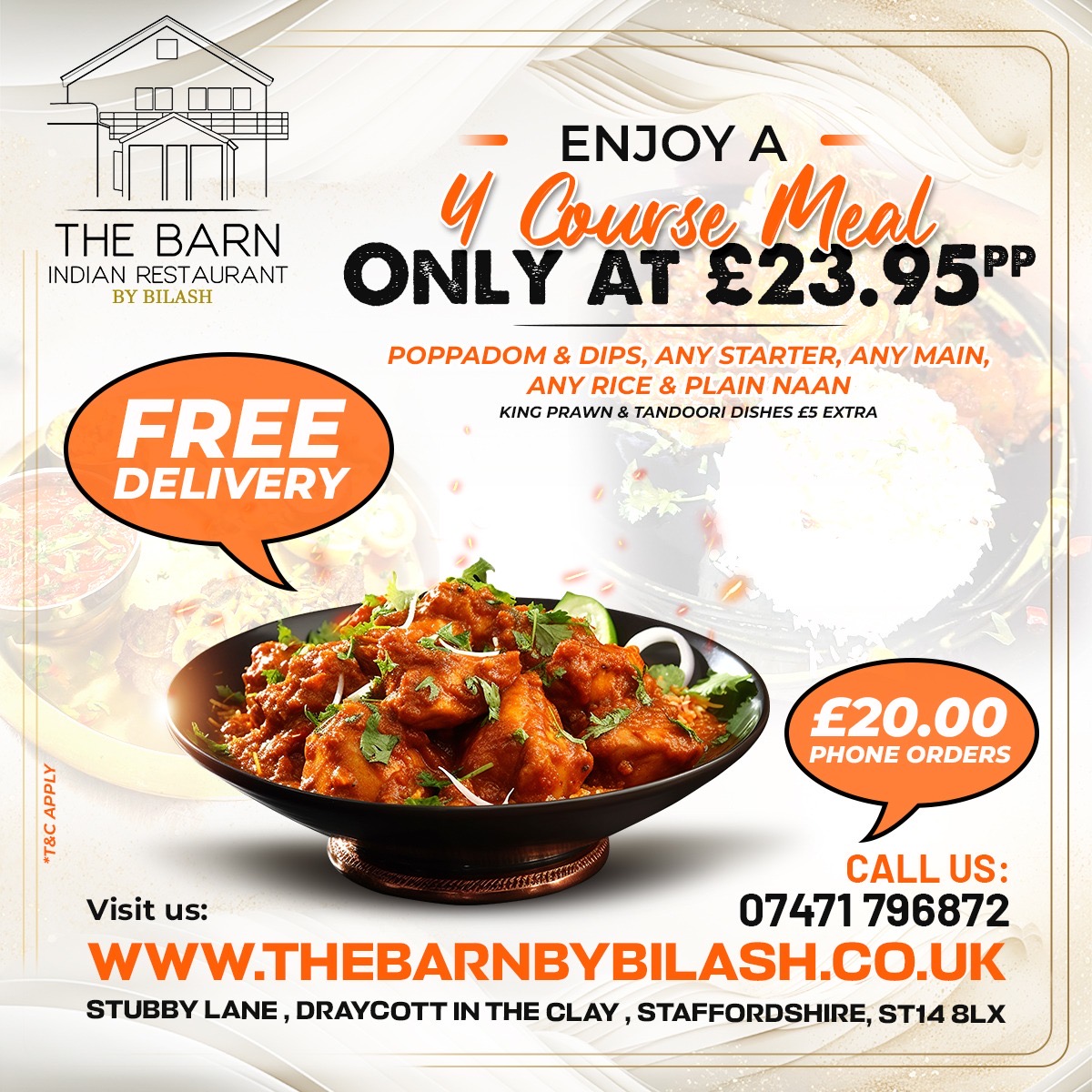 Welcome to The Barn By Bilash, a delightful Indian restaurant located in the picturesque village of Draycott in the Clay. This newly refurbished venue offers a vibrant menu that celebrates traditional Indian flavors with a contemporary twist, ensuring every dish satisfies the palate.